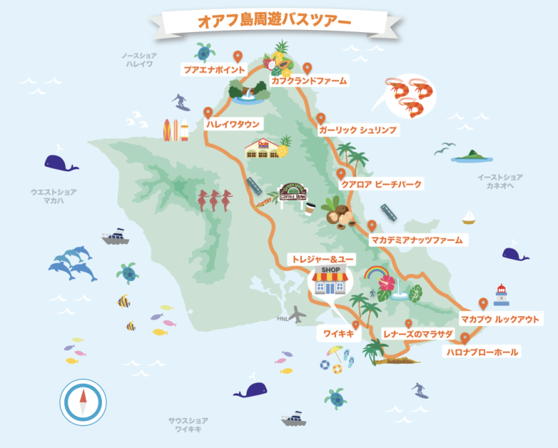 オアフ島観光一周ツアーの詳細はこちらからご覧ください